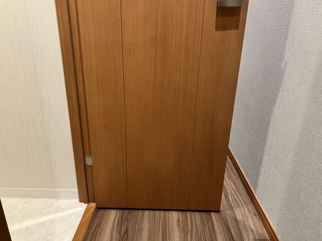 足立区にて、クローゼットの交換をしました。 クローゼット内もクロスで仕上げております。そのまま貼ると下地が糊を吸ってしまいクロスが浮いてしまう可能性もあるため、一旦石膏ボードを張ってからクロスを貼っています。